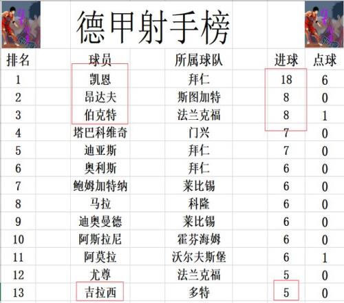 射手榜方面,凯恩18球高居榜首,已经领先第2的昂达夫,伯克特10球之多。迪亚斯,塔巴科维奇7球并列第4,吉拉西今天进球被吹掉,无缘追上鲍姆加特纳,阿莫拉等人,还是差1球才能挤入前十。